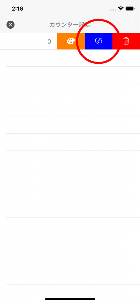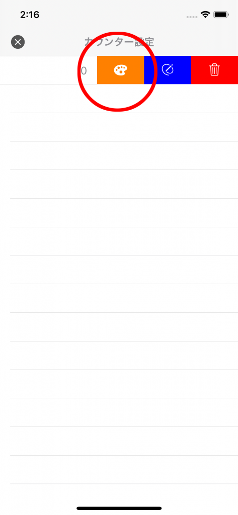 変更したいアイテムを右から左へスワイプしてメニューを表示してパレットを表示します