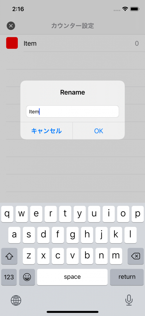 変更したいアイテムを右から左へスワイプしてメニューを表示してペンを選択してください